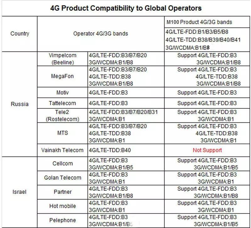 Podržano je prilagođavanje 4G frekvencijskih pojasa za različite zemlje i regije.